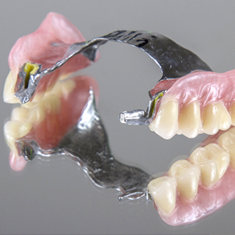2. THE PARTIAL DENTURES is recommended in case the patient did not lose all of his teeth. We can prepare partial dentures with clips which means that the replacement is fixed on your own teeth by the clips or after crowning the remaining teeth the clips will be fixed on the crowns.